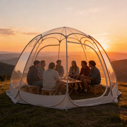 Pop Up Bubble Tent, Weatherproof and Cold Protection Camping Shelters, Instant Igloo Tent, 540° Transparent Screen Room or Patio, Backyard (Beige)(6 sides)