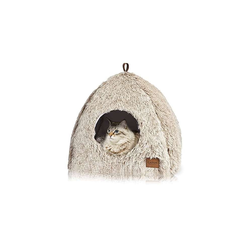 TUAKIMCE Cat Beds for Indoor Cats, Cat Cave Bed Igloo, Cat Bed Tent House with Removable Washable Pillow Cushion, Super Soft Calming Fluffy Kitten Bed