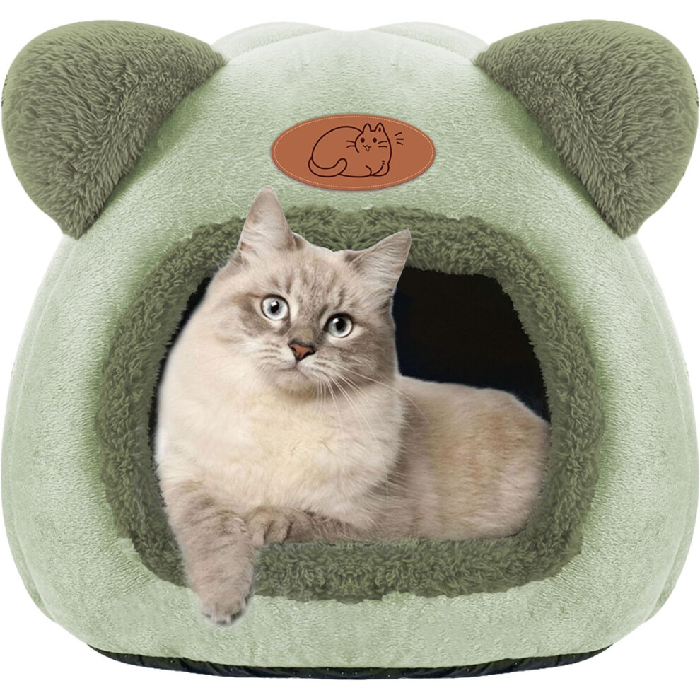 Cat Cave Bed, Cat Tent Bed House with Removable Washable Cushion, Soft Plush Cat Igloo Bed, Improve Sleep, Pet Bed for Kitten and Puppy(M, Green)