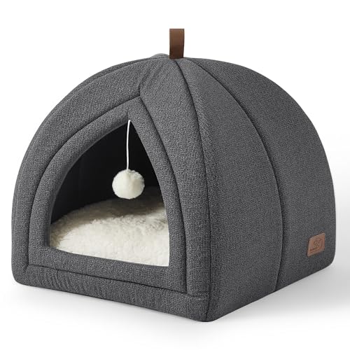 Bedsure Cat Cave Bed Igloo - Cat Tent Bed House with Removable Washable Cushion Pillow Foldable Portable Pet Bed,Dark Grey, 40x40x40cm