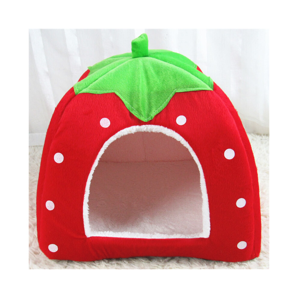 (Red, S) Pet Strawberry Cat Dog Plush Washable Igloo Bed Pyramid Kennel Pad House Tent
