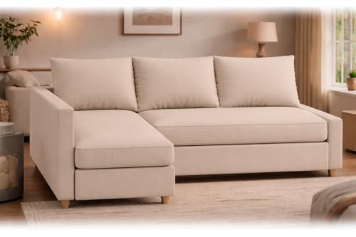 HomeTown Market Sofa Covers Only! Heavy Duty Friheten Sofa Cover Replacement Compatible with IKEA Friheten Sleeper Bed Corner Sectional Slipcover. (Polyester Beige Left Longer)