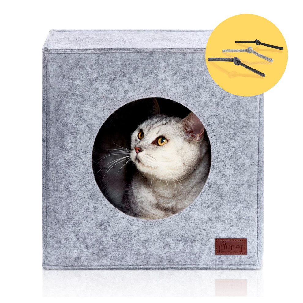 PiuPet? Cozy Cat House for IKEA? Shelves I Indoor Cat Bed & Cave with Cushion in Grey