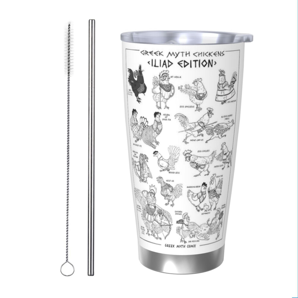 (Greek Myth Chickens - Iliad Edition (black And White)_7216) Stainless Steel Tumbler 20oz Insulated Coffee Travel Funny Birthday Christmas Gifts for W