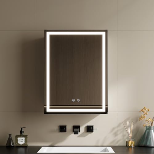 Mepplzian 50x70 Illuminated Bathroom Mirror Cabinets,Led Cabinet with Lights 3 Color Adjust,Mirrored Cabinets Wall Mounted with Defogger,Bathroom Mirror with Storage,Lighted Medicine cabient