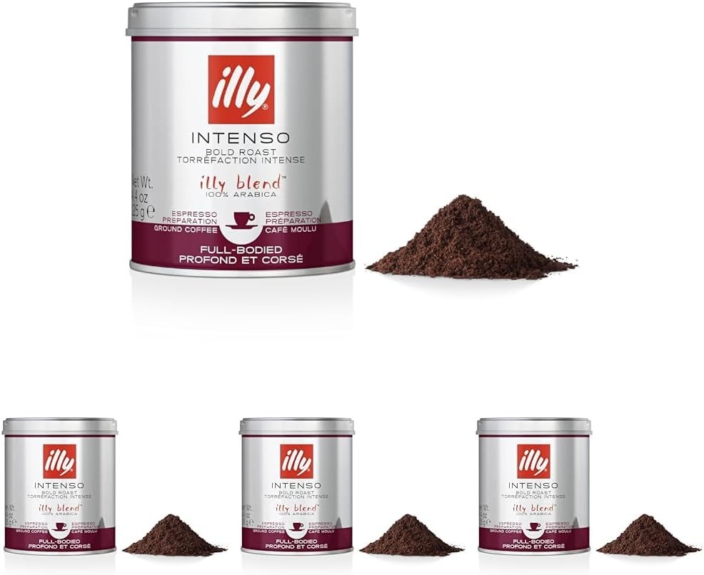 Illy Coffee - Intenso Ground Coffee - Dark Roast - 100% Arabica Coffee - Ideal f