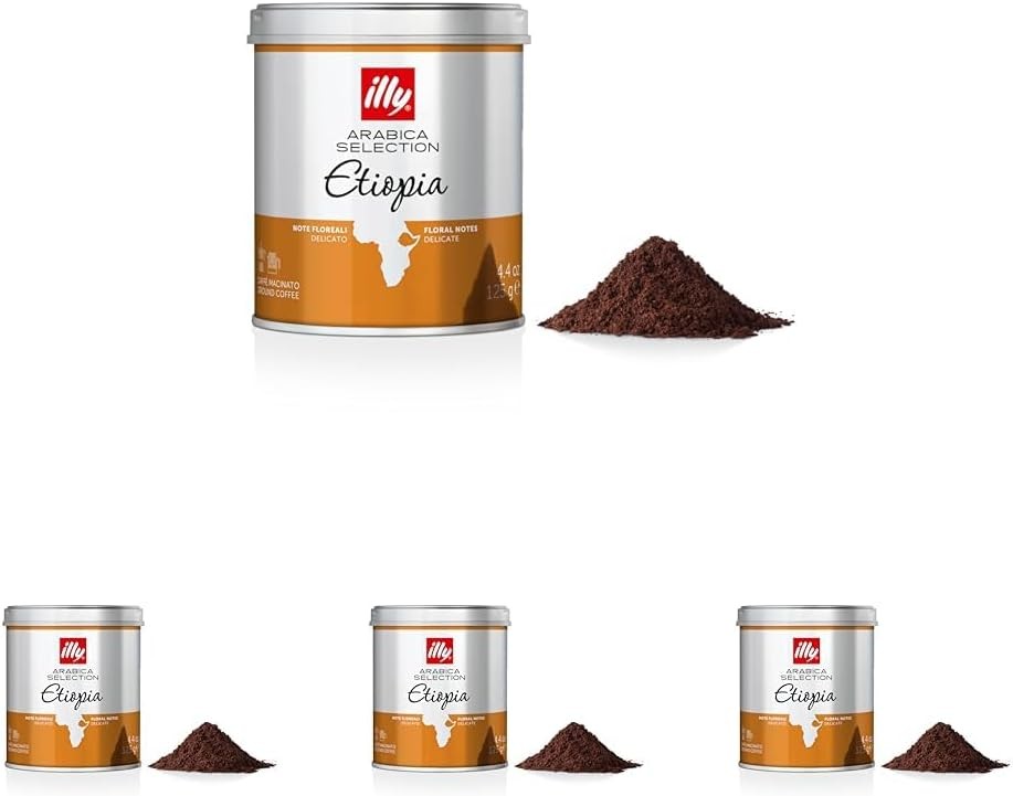illy Ground Coffee, Ethiopia Single Origin, Medium Roast, 100% Arabica, Ideal f