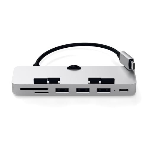SATECHI Aluminum Type-C Clamp Hub Pro with USB-C Data Port, USB-A 3.0 Data, Micro/SD Card Reader - Compatible with 2020/2019/2017 iMac & iMac Pro, Does Not Fit 2021 iMac (Silver)