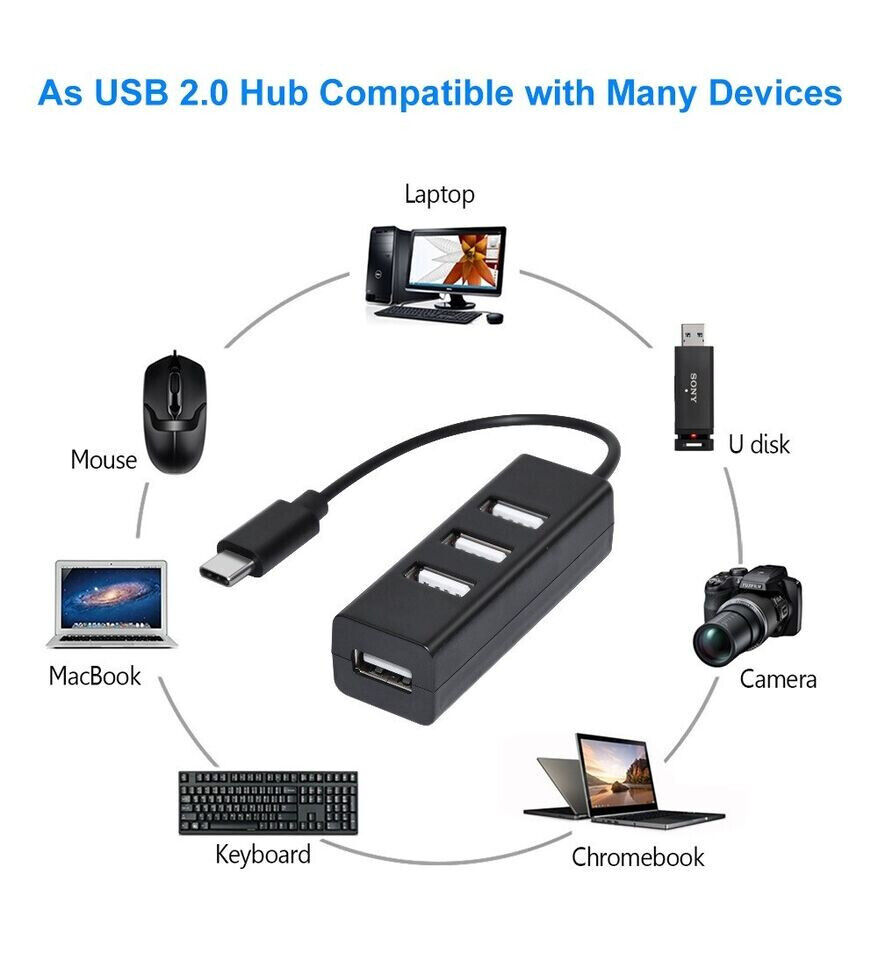 Type C USB to 4 Ports USB HUB Splitter for MacBook Pro iMac PC Laptop Notebook
