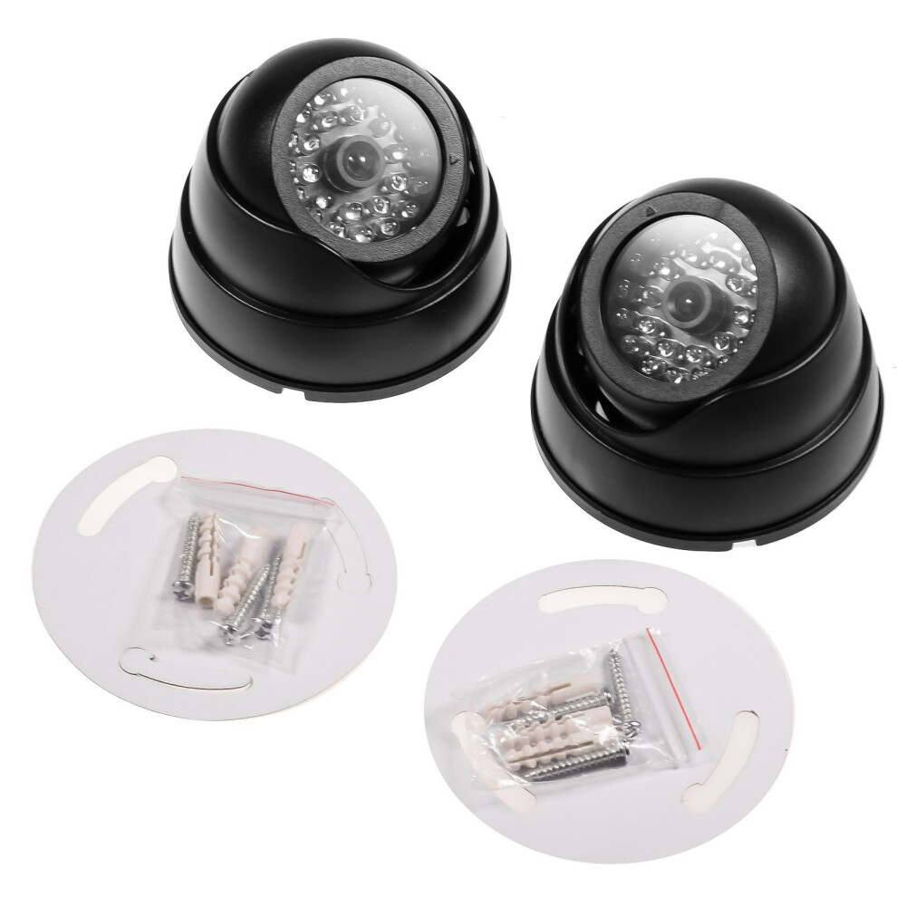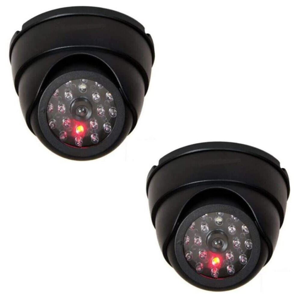 2 X Dummy Fake Surveillance Security CCTV Dome Camera With LED Blinking Real imitation for Home Security Black