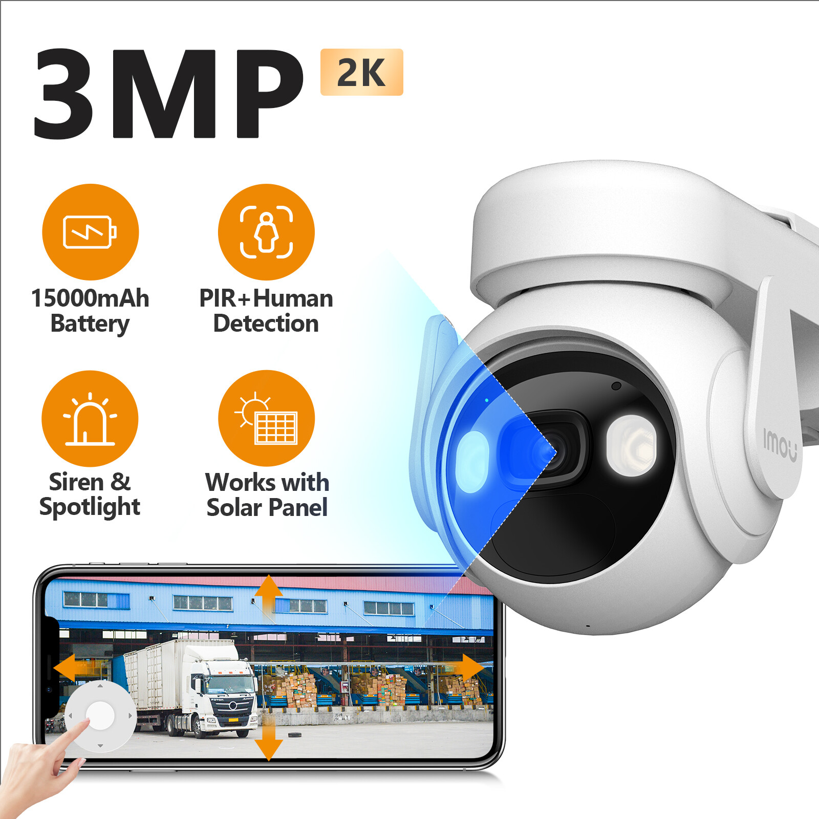 Imou Cell PT Kit, 2K/3MP, Outdoor Pan & Tilt Smart Wi-Fi Rechargeable Battery Security Camera with Solar Panel