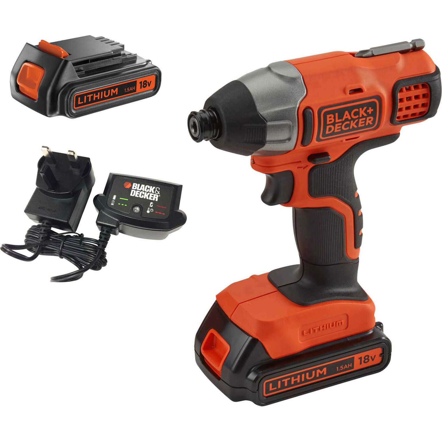 Black and Decker BDCIM18 18v Cordless Impact Driver 1 x 1.5ah Li-ion Battery Charger No Case
