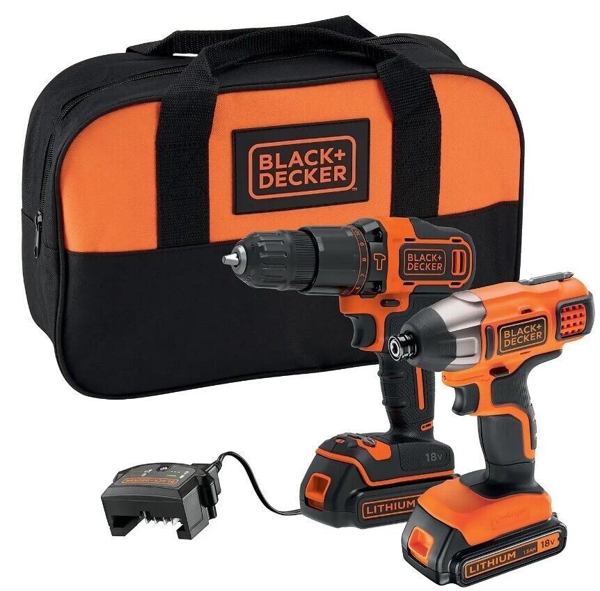 Black and Decker BCK25S2S 18v Cordless Combi Drill and Impact Driver Kit 2 x 1.5ah Li-ion Battery Charger Bag