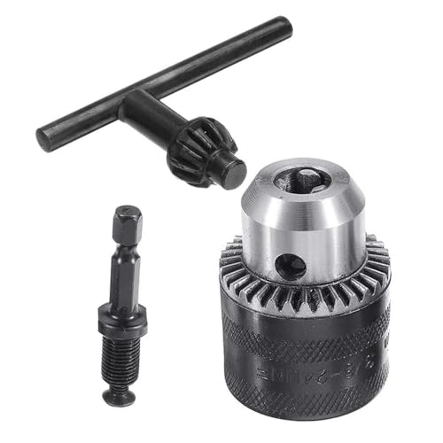 FyMosem 1.5-10mm Capacity Drill Chuck Adapter 1/4" Hex Shank Quick Change Converter 3/8-24UNF Mount Impact Driver Bits Conversion Tool with Chuck Key for Electric Drills
