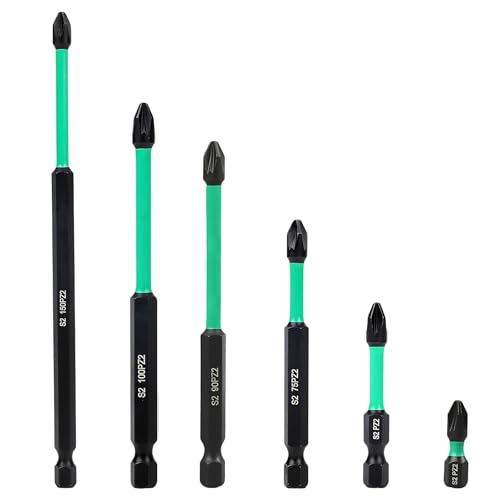 6 Pcs PZ2 High Magnetic Screwdriver Bit Set, 25L 50L 75L 90L 100L 150L Impact Driver Bits, Durable S2 Steel Magnetic Drill Bits with 1/4" Hex Shank for Power Tools