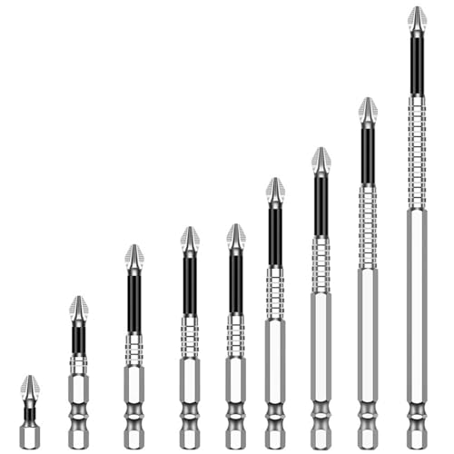 High Magnetic Screwdriver Drill Bit Set with PH2 Impact Driver Bits in 9 Sizes 25L 50L 65L 70L 75L 90L 100L 120L 150L Magnetic Screw Bits for Drill Anti-Slip Design
