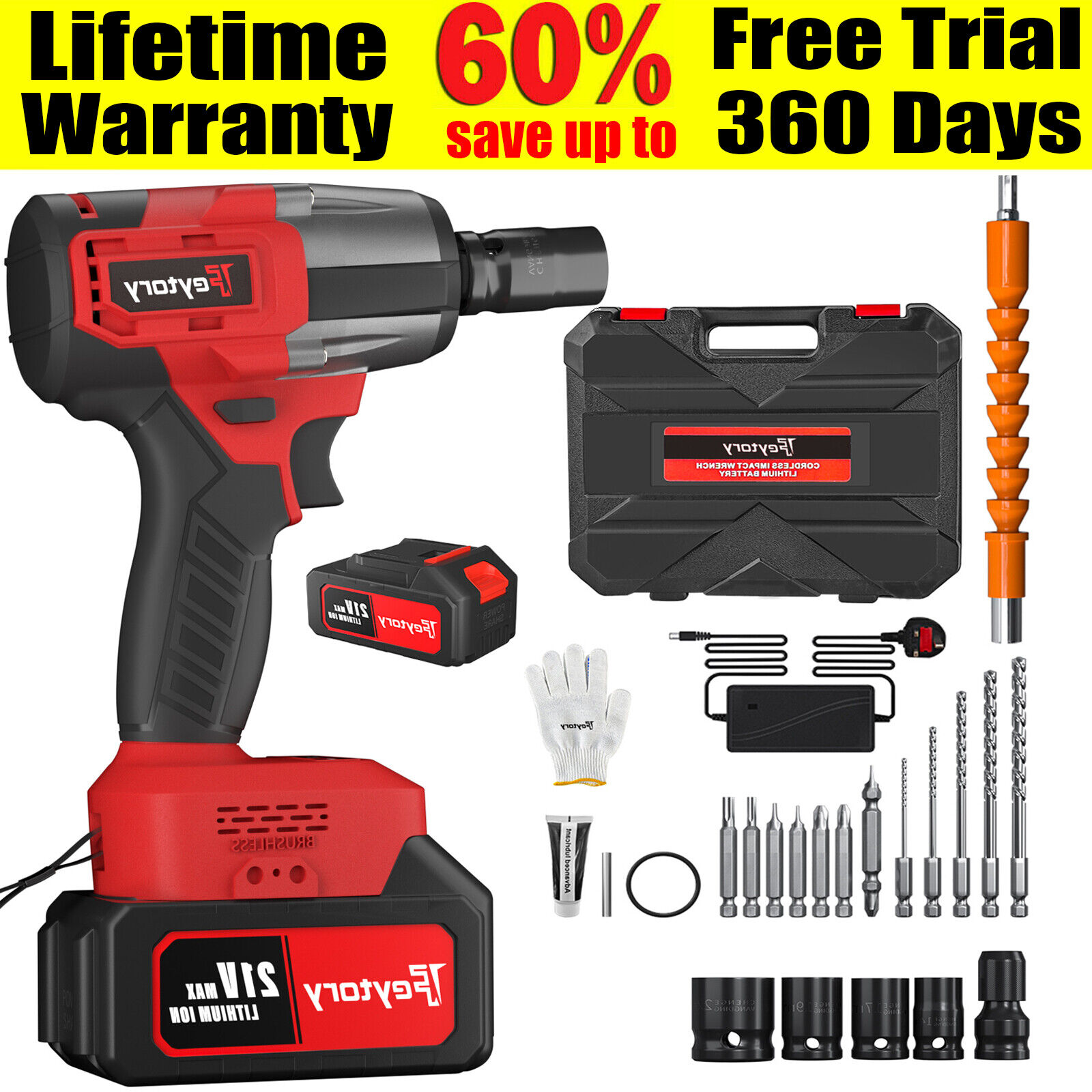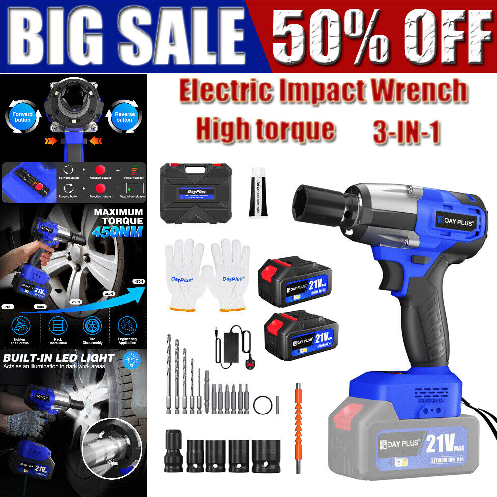 Cordless Electric Impact Wrench Gun 1/2'' High Power Driver LED Li-ion Battery
