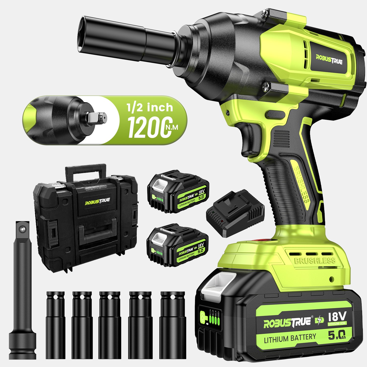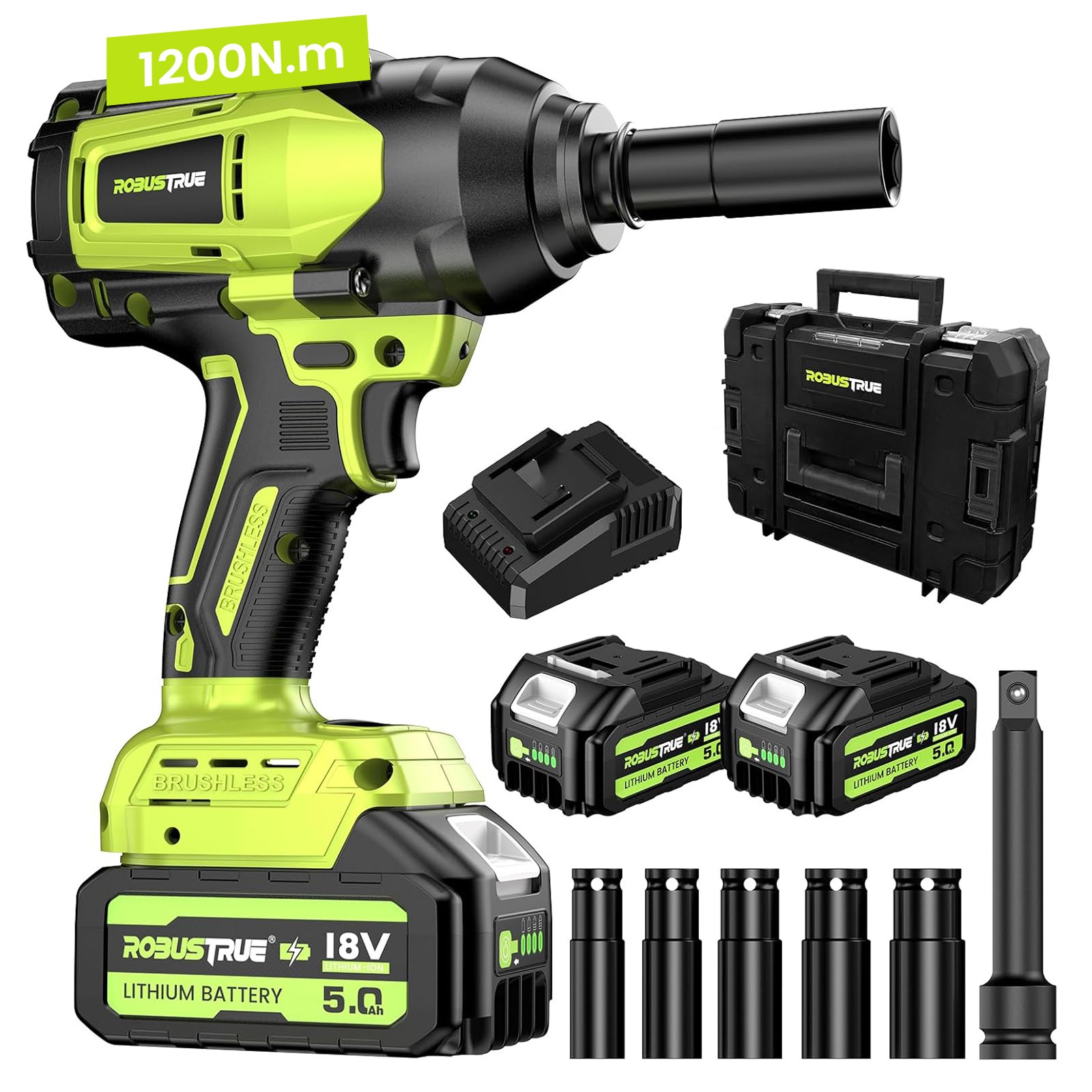 1/2in 1200Nm Cordless Impact Wrench, Electric Gun,2*5000mAh Battery+Fast Charger