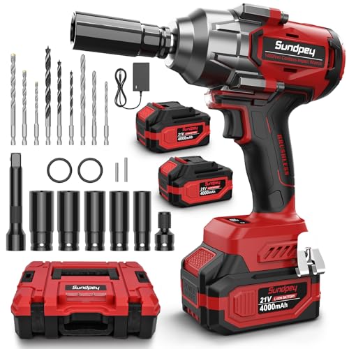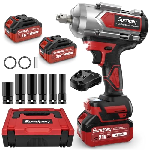 Sundpey Cordless Impact Wrench 1200N·m - 900lbf·ft High Torque Impact Wrench with 2 × 4000mAh Battery - 2600RPM Brushless Impact Gun with 6 Sockets & Fast Charger & Carry Case for Car Tire Truck DIY