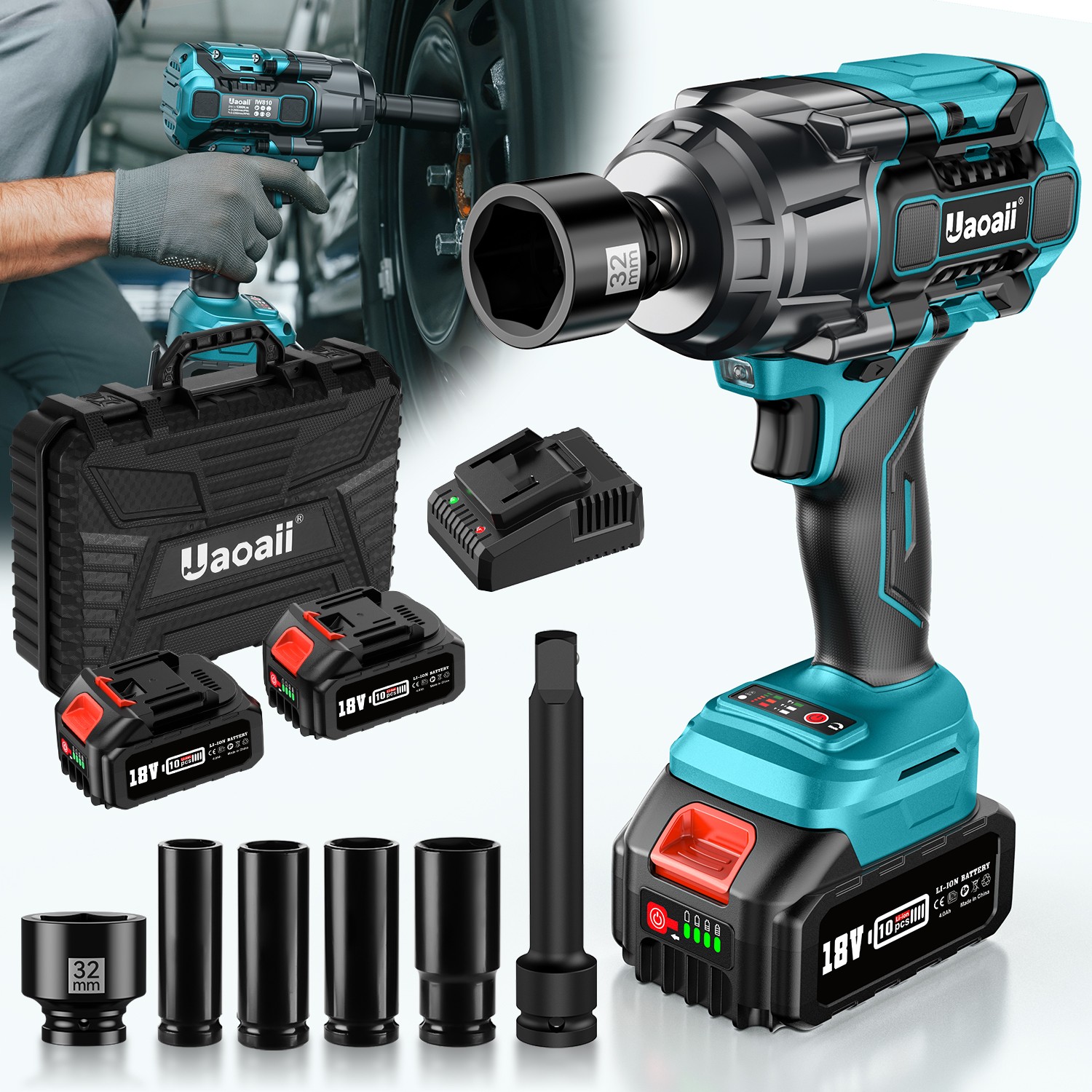 Uaoaii 1400N.m(1010ft-lbs) Cordless Impact Wrench Torque Beast, 1/2 Battery Impact Gun w/ 2X 4.0Ah Battery, 5 Sockets & Storage Box, Electric Impact Wrench for Truck RV, Maintenance Duty, IW810