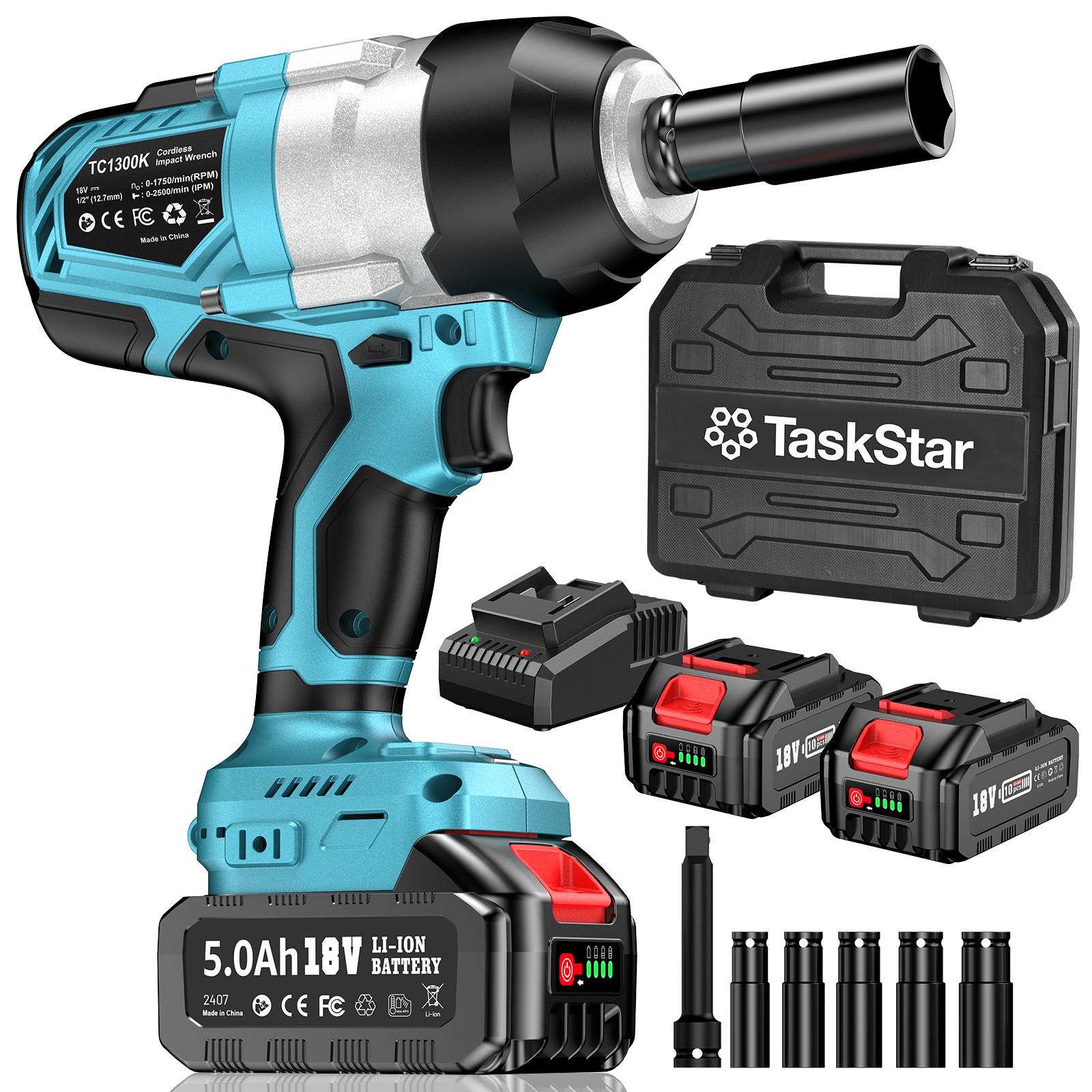 TaskStar Impact Wrench 3/4 inch, 1180Ft-lbs(1600N.m) Brushless Impact Gun High Torque Impact Driver w/ 5.0Ah Battery & Fast Charger, Electric Impact Wrench for Truck, Industrial Tasks