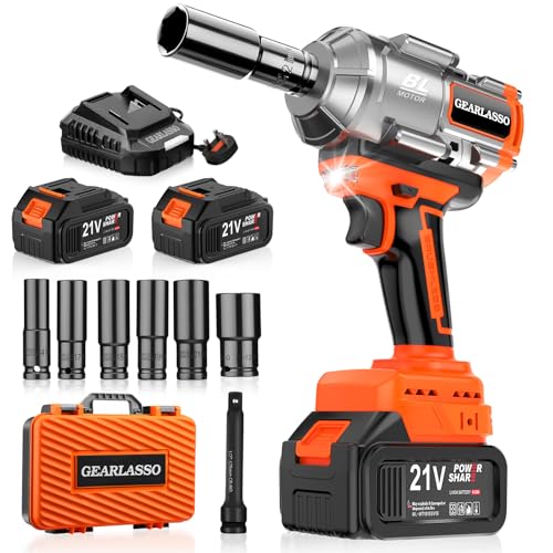 GEARLASSO 1/2" Cordless Impact Wrench 1600Nm(1200Ft-lbs) High Torque Brushless Impact Gun with 2 x 4.0Ah Batteries, 6 Sockets, Charger, Extension Bar, Variable Speeds for Home/Car/Truck/RV/Mower