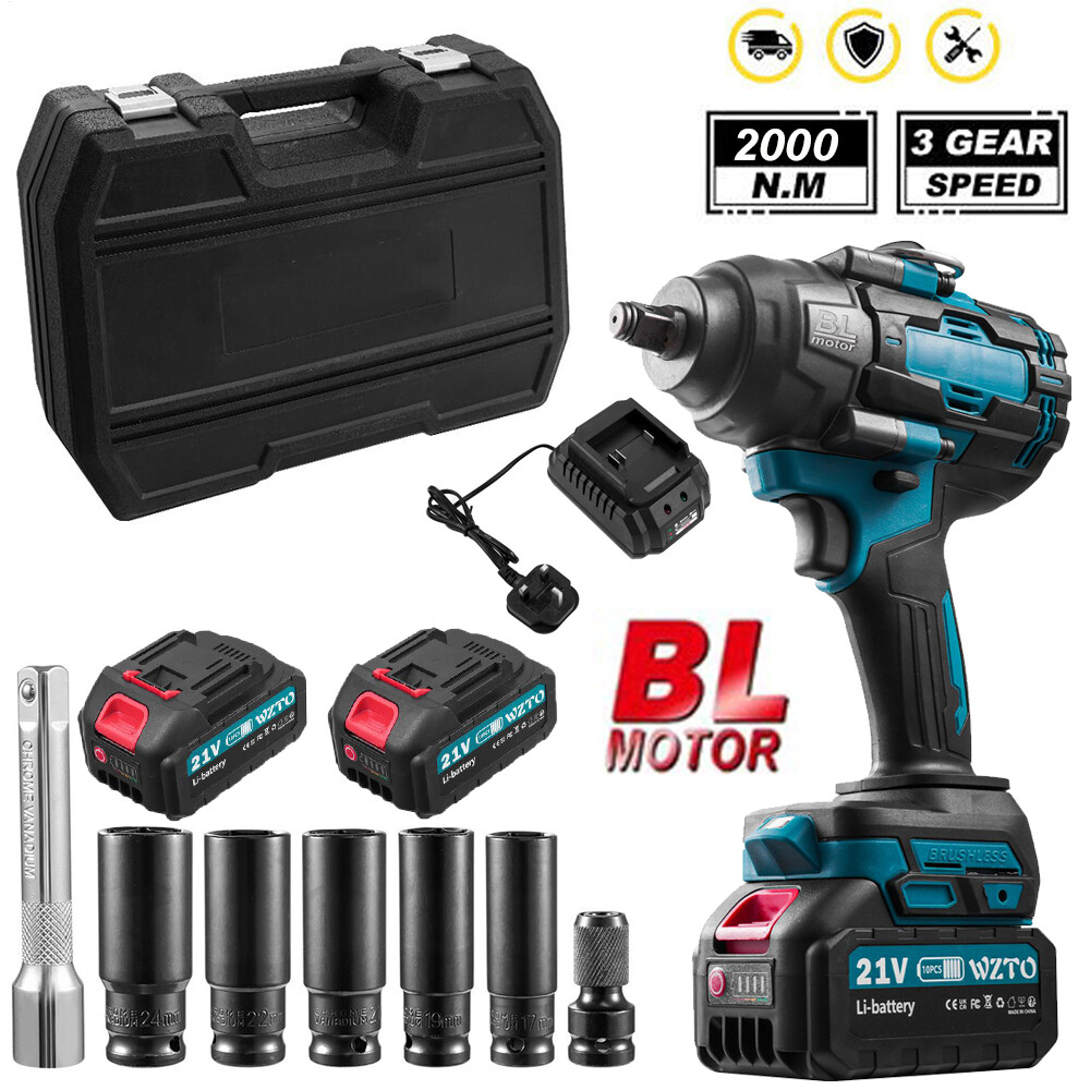 2000Nm 1/2" Cordless Electric Impact Wrench Drill Gun Ratchet Driver w/ 2Battery