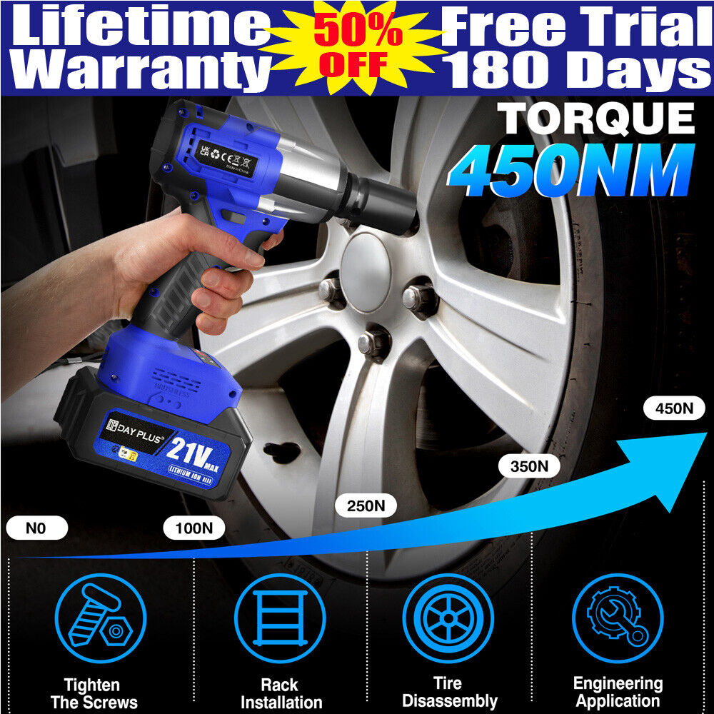 1200Nm 1/2" Cordless Electric Impact Wrench Drill Gun Ratchet Driver and Battery