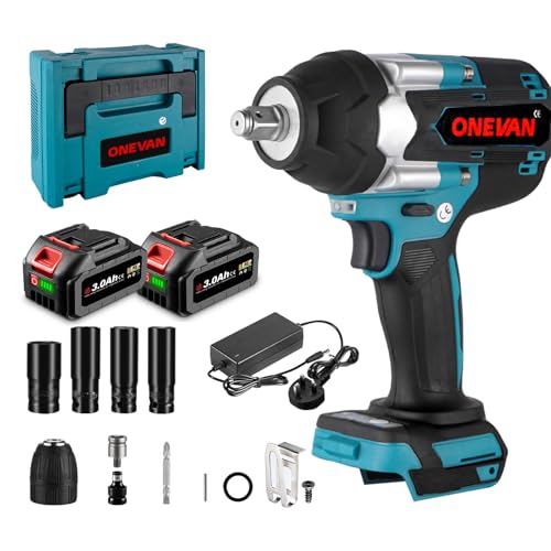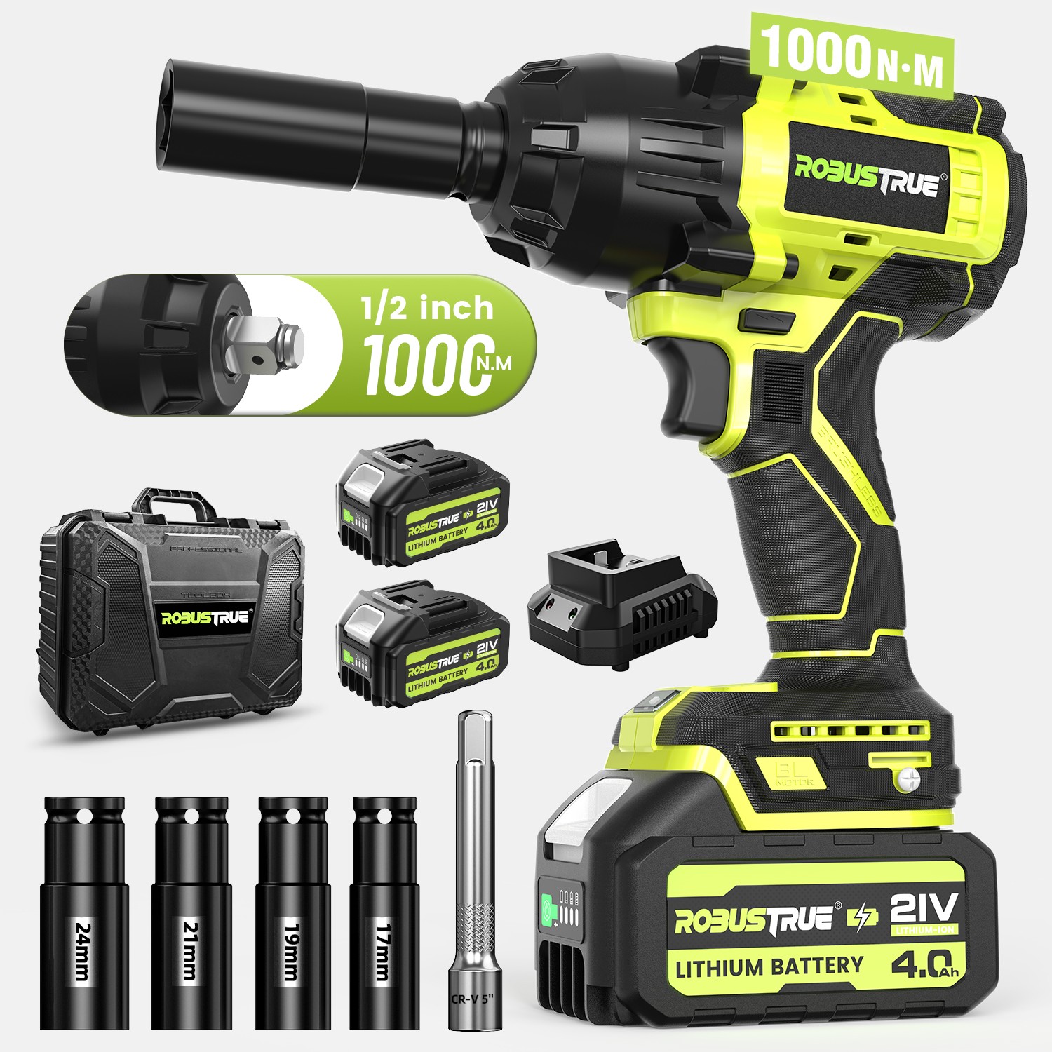 Uaoaii 1000Nm(738ft-lbs) Cordless Impact Wrench High Torque, 1/2 Power Battery Impact Gun w/ 2X 4.0Ah Battery, Fast Charger, 5 Sockets, Storage Tool Box & Variable Speeds for Car Tire Truck RV Mower