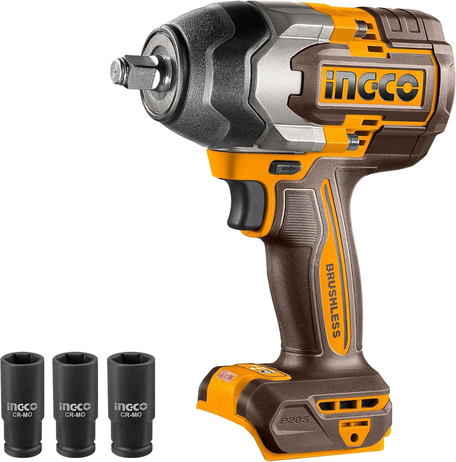 Ingco 20V 1/2Inch Cordless HighTorque Impact Wrench, Battery Impact Gun 850Nm w