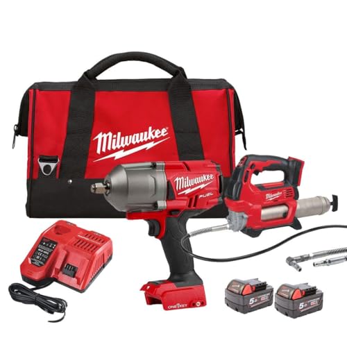 Milwaukee M18 FPP2AI-502B 18V Impact Wrench/Grease Gun Twin Pack with 2 x 5.0Ah Batteries, Charger in Bag