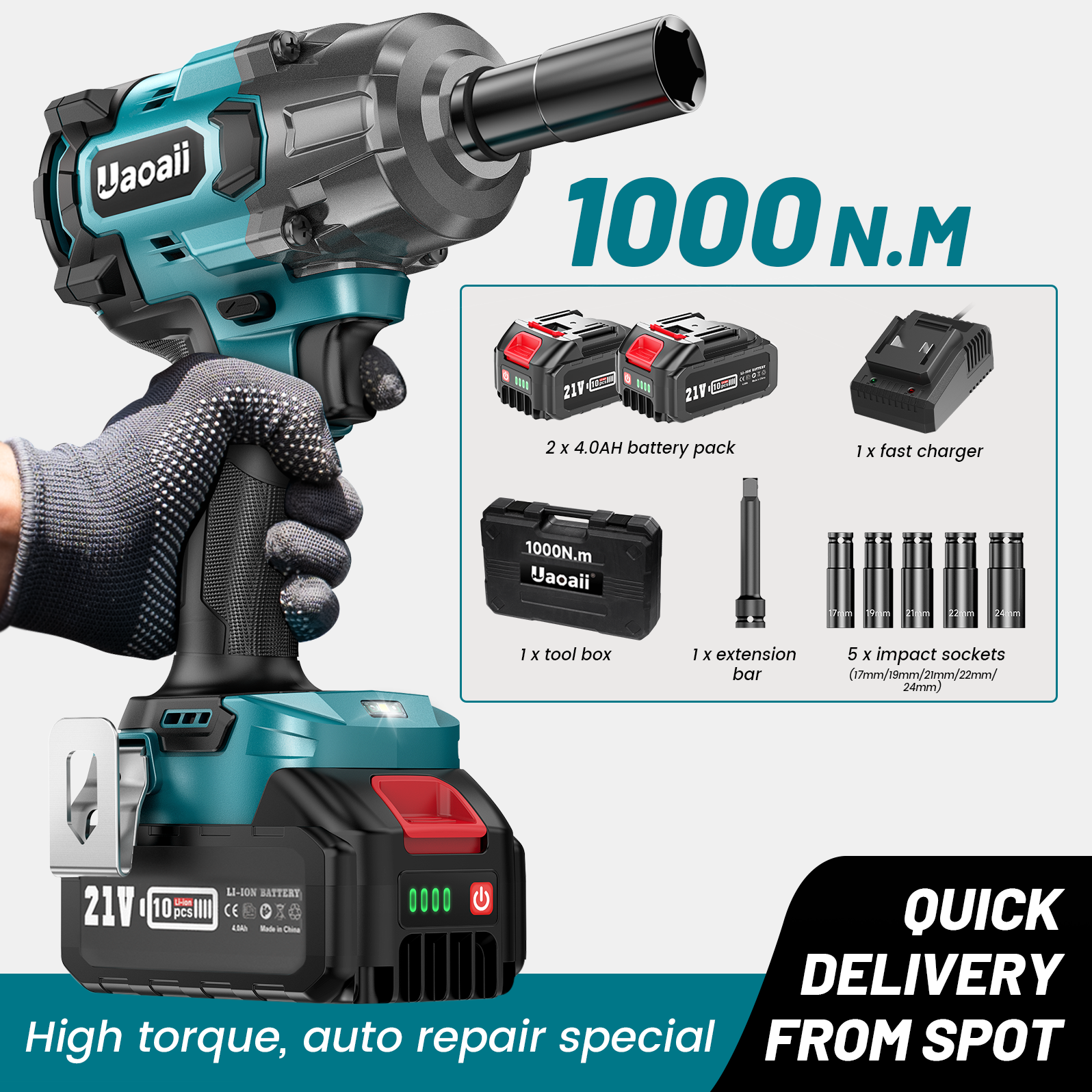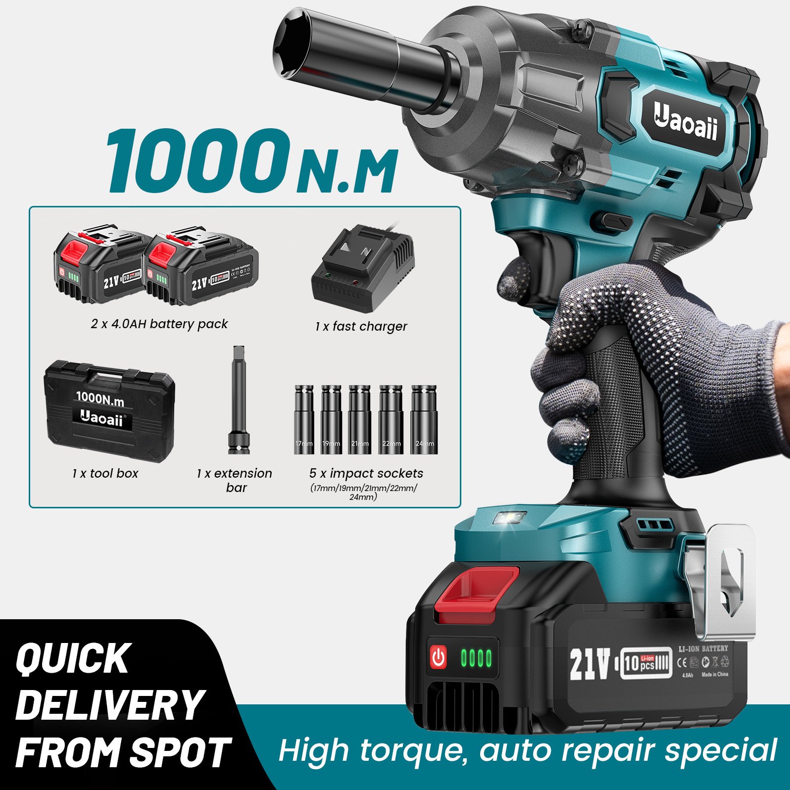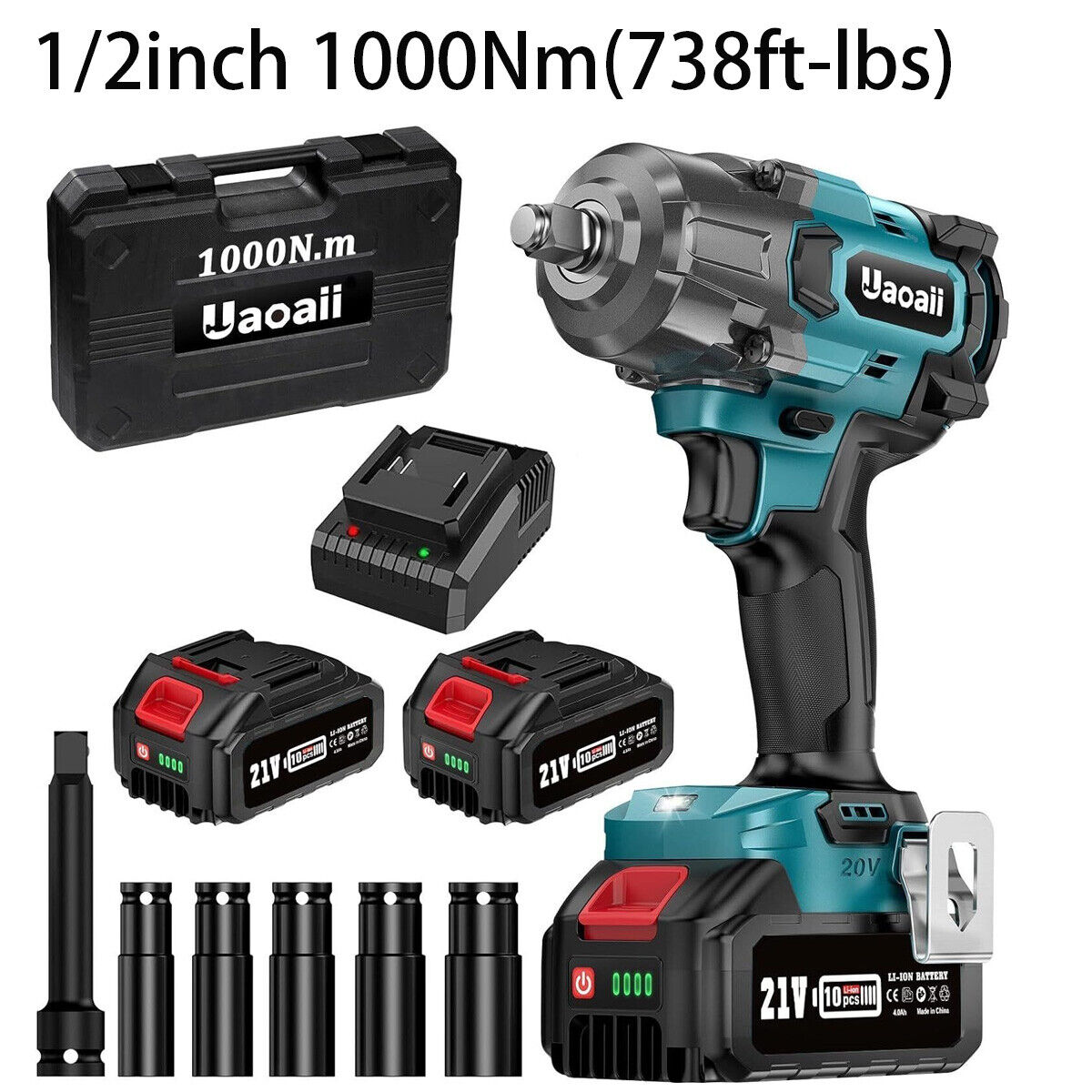 Uaoaii 1000Nm Cordless Impact Wrench High Torque 1/2 Power Battery Impact Gun