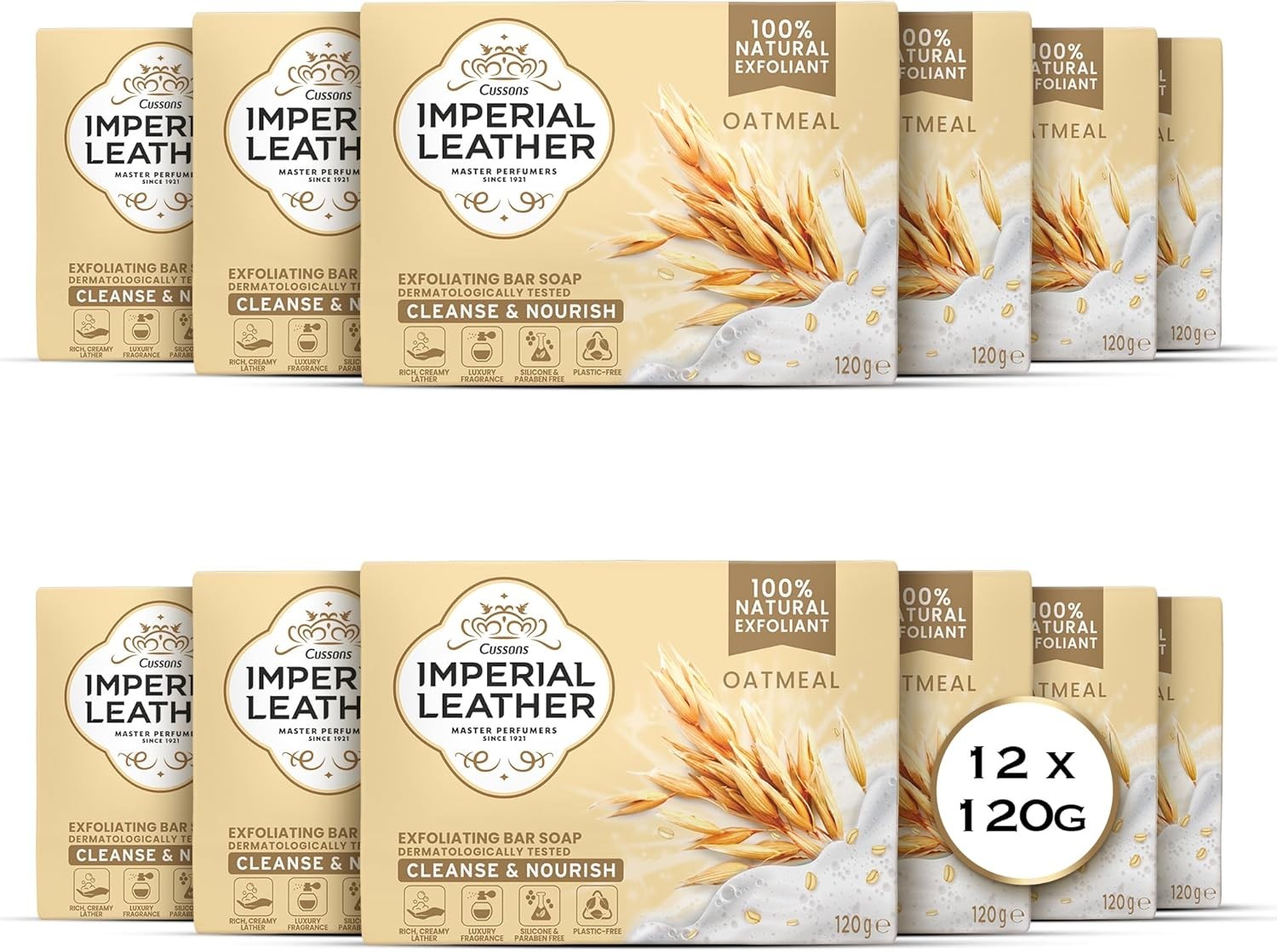 Imperial Leather Oatmeal Exfoliating Bar Soap, Bulk Buy, Pack 12 x 120g
