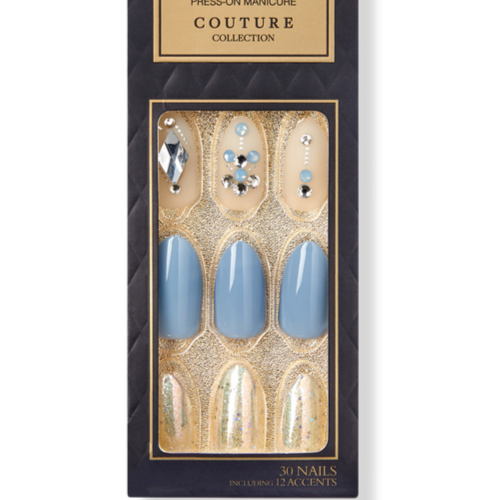 KISS IMPRESS PRESS ON FALSE NAILS COUTURE BLUE MOOD MEDIUM LENGTH JEWEL ACCENTS