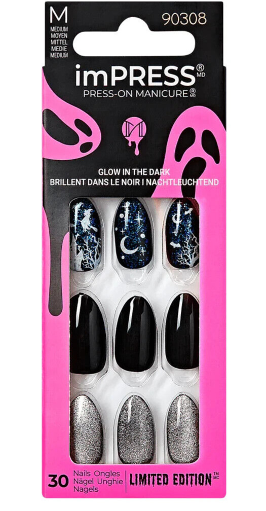 KISS IMPRESS PRESS ON NAILS ONE STEP MANICURE BEWITCHING MEDIUM LENGTH HALLOWEEN