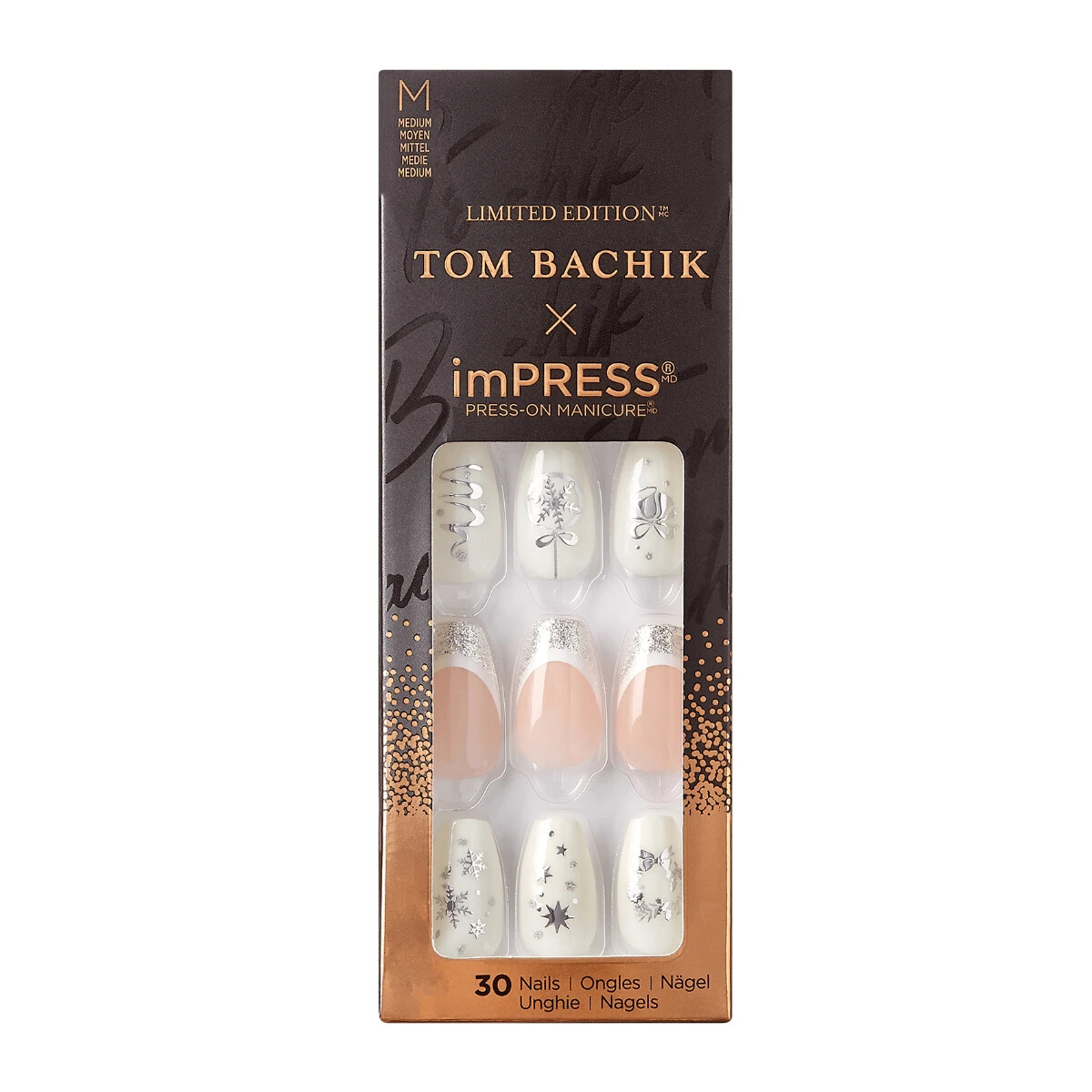 KISS IMPRESS PRESS ON NAILS ONE STEP MANICURE NEW 'TIS THE SEASON MEDIUM LENGTH