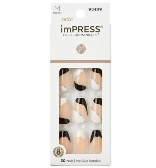 KISS IMPRESS PRESS ON FALSE NAILS ONE STEP MANICURE NEW PLAYBACK MEDIUM LENGTH
