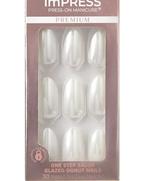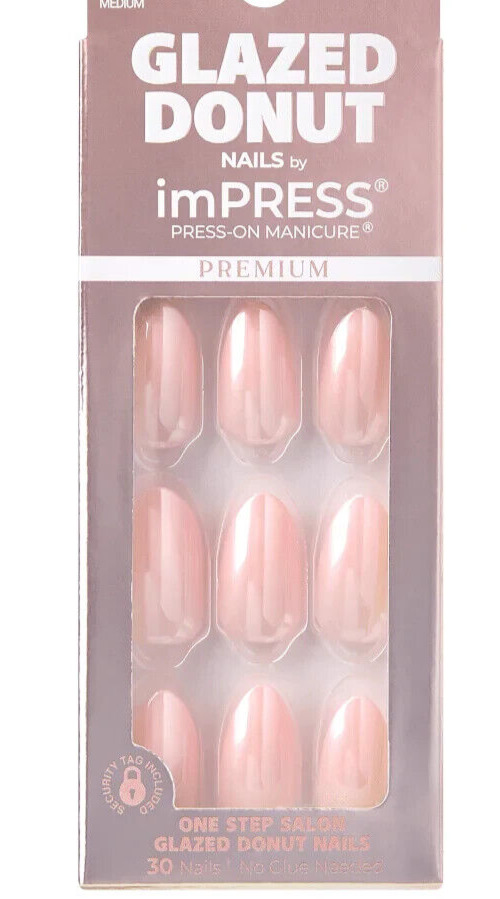 KISS IMPRESS PRESS ON NAILS ONE STEP MANICURE GLAZED DONUT VANILLA MEDIUM LONG