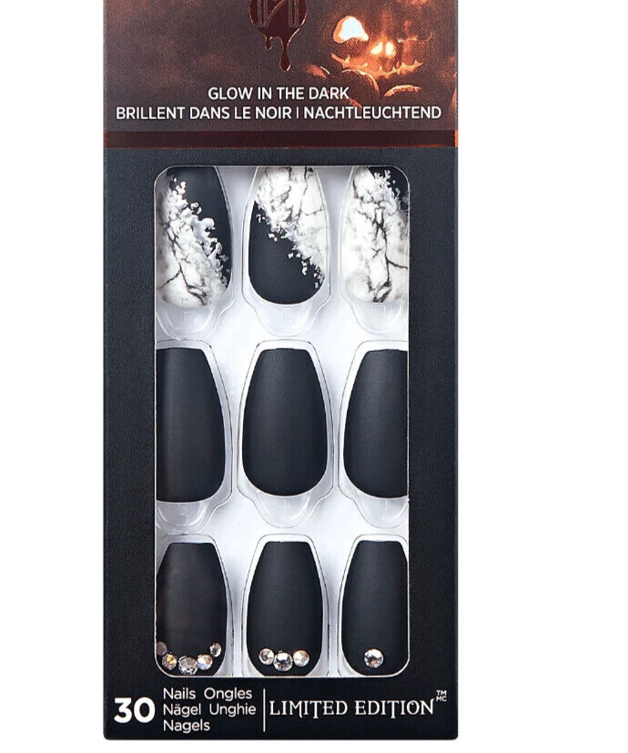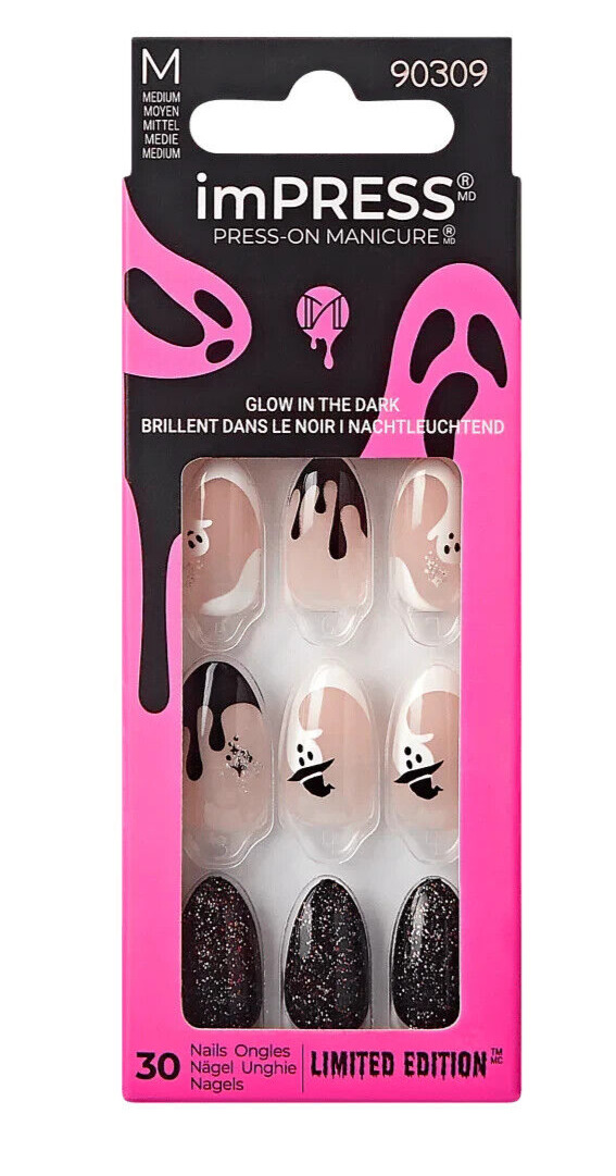 KISS IMPRESS PRESS ON NAILS ONE STEP MANICURE DEJA BOO MEDIUM LENGTH HALLOWEEN