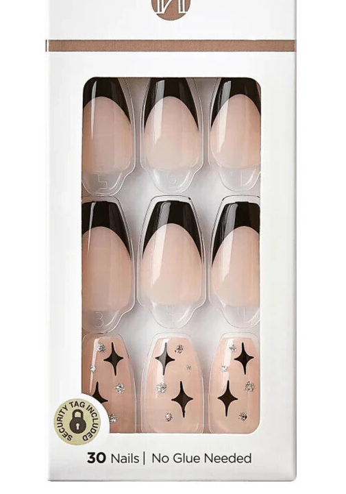 KISS IMPRESS PRESS ON NAILS ONE STEP MANICURE NEW TUXEDO NIGHTS MEDIUM LENGTH