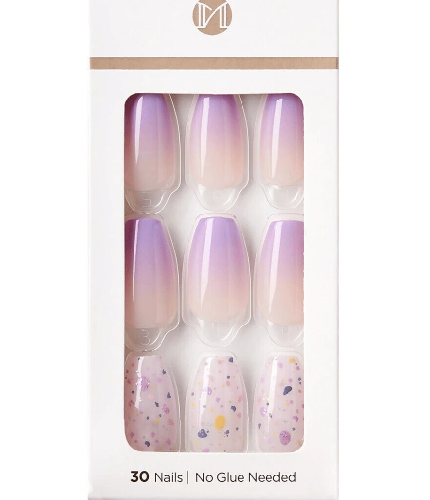 KISS imPRESS No Glue Mani Press On Nails Design 'All I Want' Purple Medium Size Coffin Shape Includes 30 Nails Prep Pad Instructions Shee