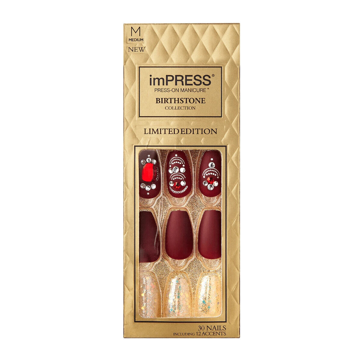 KISS IMPRESS PRESS ON NAILS ONE STEP MANICURE NEW BIRTHSTONE RUBY MEDIUM LENGTH