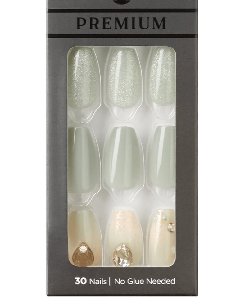KISS imPRESS No Glue Mani Press-On Nails Design 'Ballerina' Neutral/green Medium Size Coffin Shape Includes 30 Nails Prep Pad Instruction