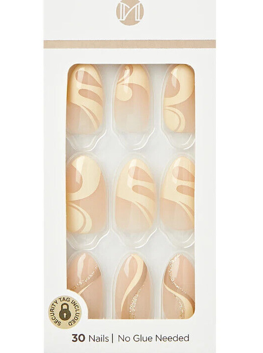 KISS imPRESS No Glue Mani Press-On Nails Design 'As It Was' Neutral/green Medium Size Almond Shape Includes 30 Nails Prep Pad Instruction