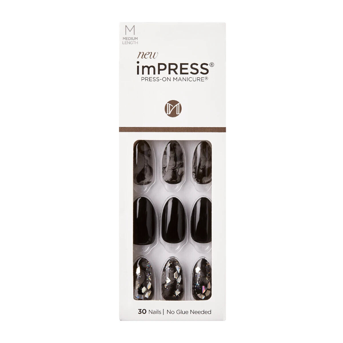 KISS IMPRESS PRESS ON NAILS ONE STEP MANICURE NEW MEDIUM LENGTH FOR THE NIGHT