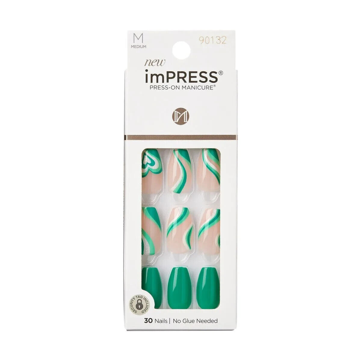 KISS IMPRESS PRESS ON NAILS ONE STEP MANICURE NEW EMERALD MEDIUM LENGTH