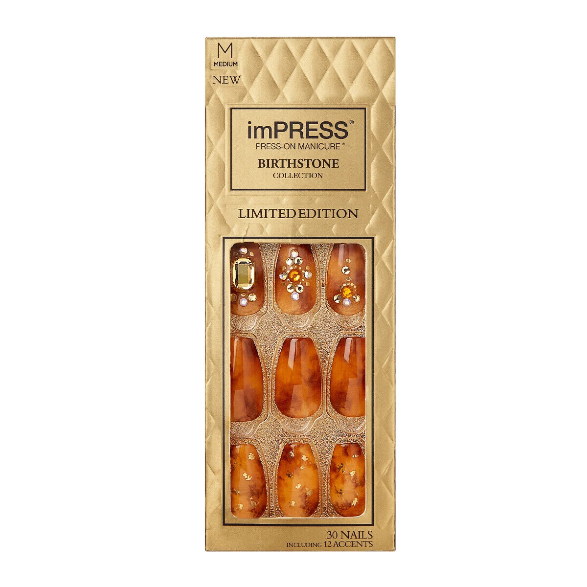 KISS IMPRESS PRESS ON NAILS ONE STEP MANICURE NEW CITRINE MEDIUM LENGTH