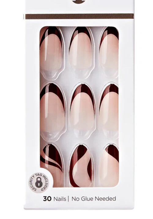 KISS IMPRESS PRESS ON NAILS ONE STEP MANICURE GLAZED DONUT CHOCOLATE MEDIUM LONG