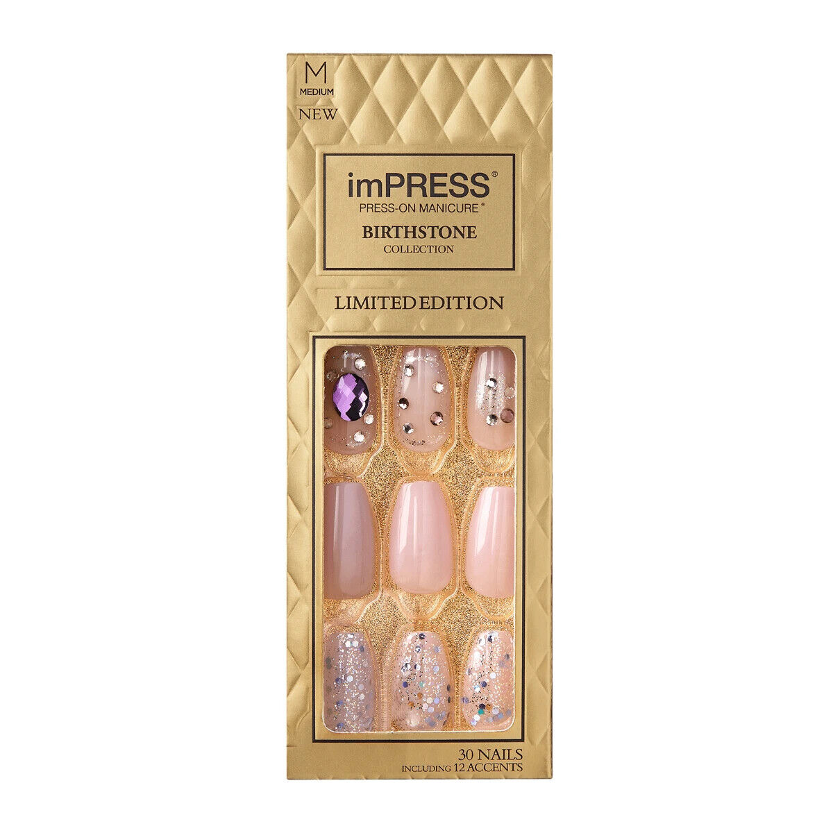 KISS IMPRESS PRESS ON NAILS ONE STEP MANICURE NEW AMETHYST MEDIUM LENGTH