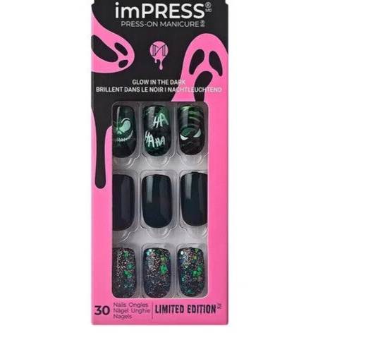 KISS IMPRESS PRESS ON NAILS ONE STEP MANICURE GOOSEBUMPS MEDIUM LENGTH HALLOWEEN
